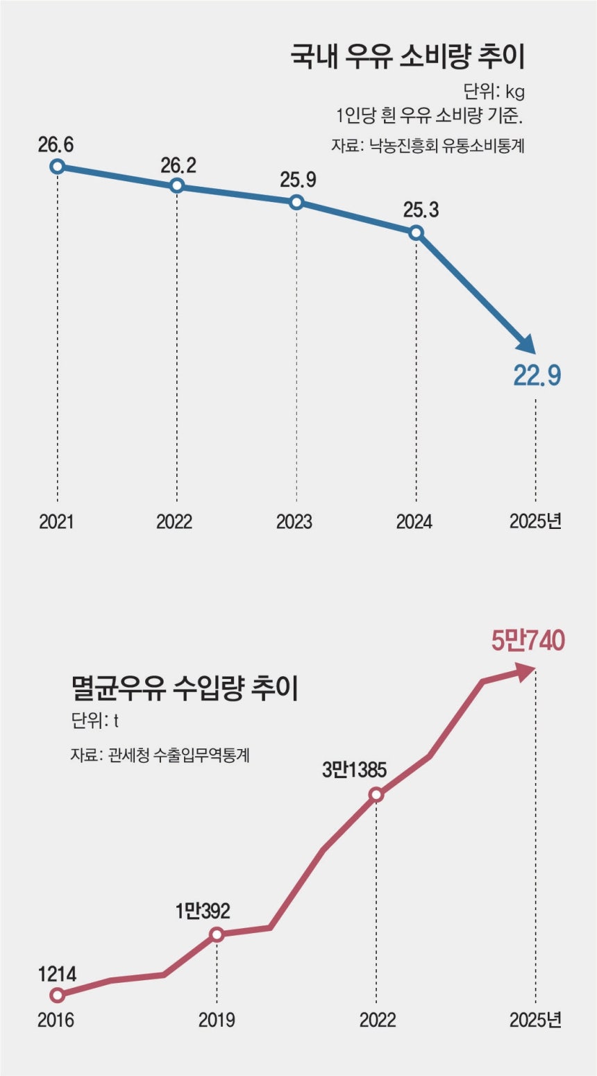 이종우 남서울대 유통마케팅학과 교수는 “우유 소비가 급감하는 상황에서 한국은 규모의 경제를 실현하기도 어렵다 보니 낙농가와 제조사 모두 경영난을 겪는 것이 현실”이라며 “단순 가격 통제보다는 지원금을 통해 생산비 자체를 낮춰 경직된 가격 연동 체제를 완화하고 자연스럽게 가격 하락을 유도할 수 있는 환경을 조성해야 한다”고 말했다.